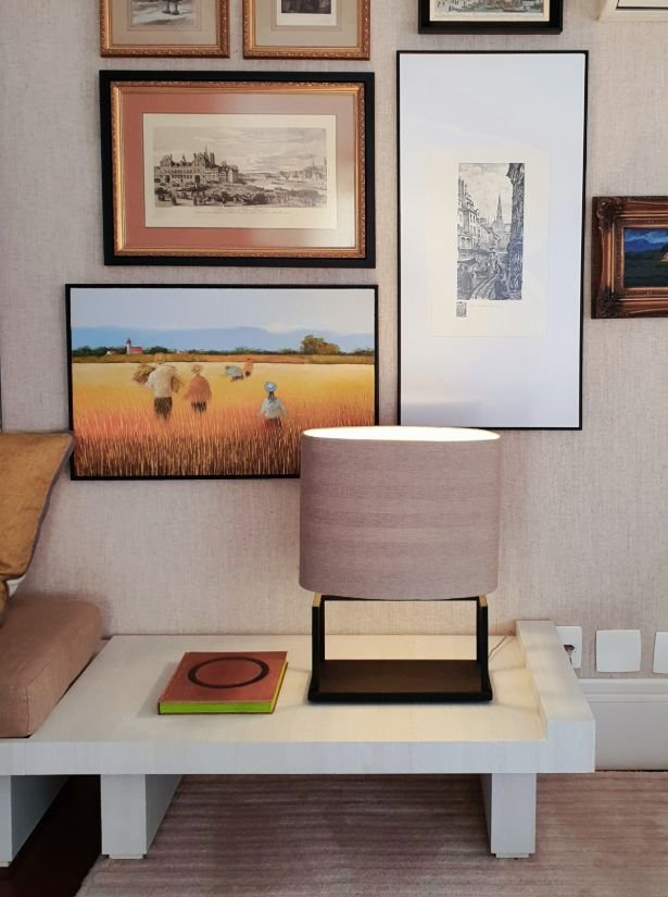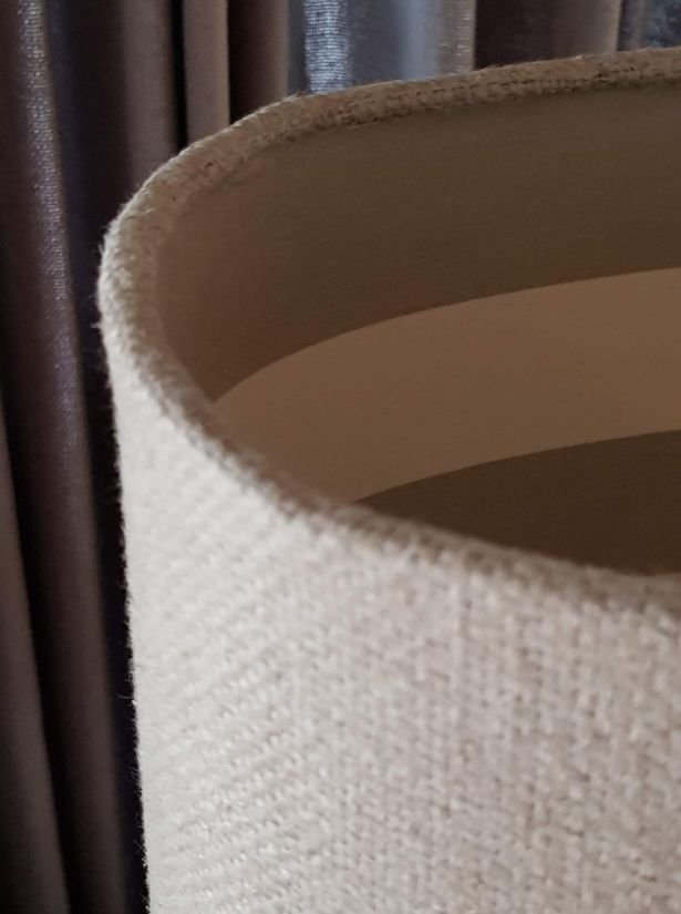 Estrutura em ferro com acabamento especial. Cúpula em tecido rústico.