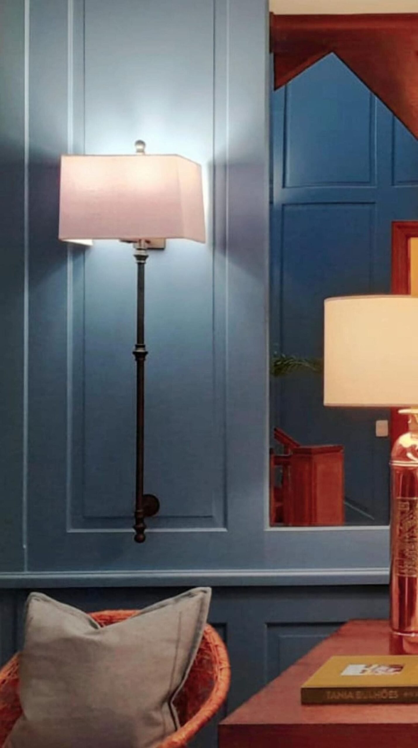 Estrutura em ferro com acabamento especial. Cúpula em tecido rústico.