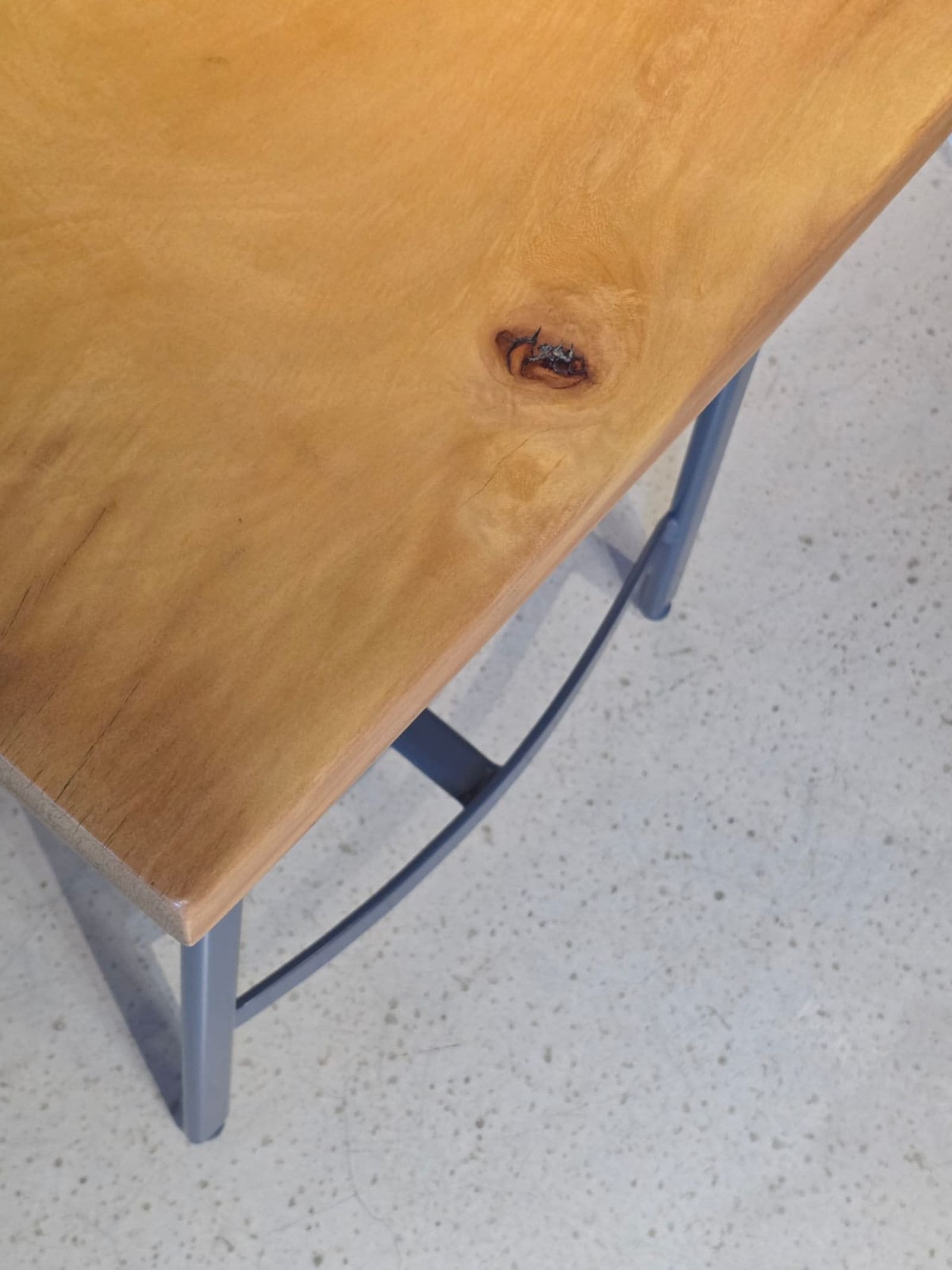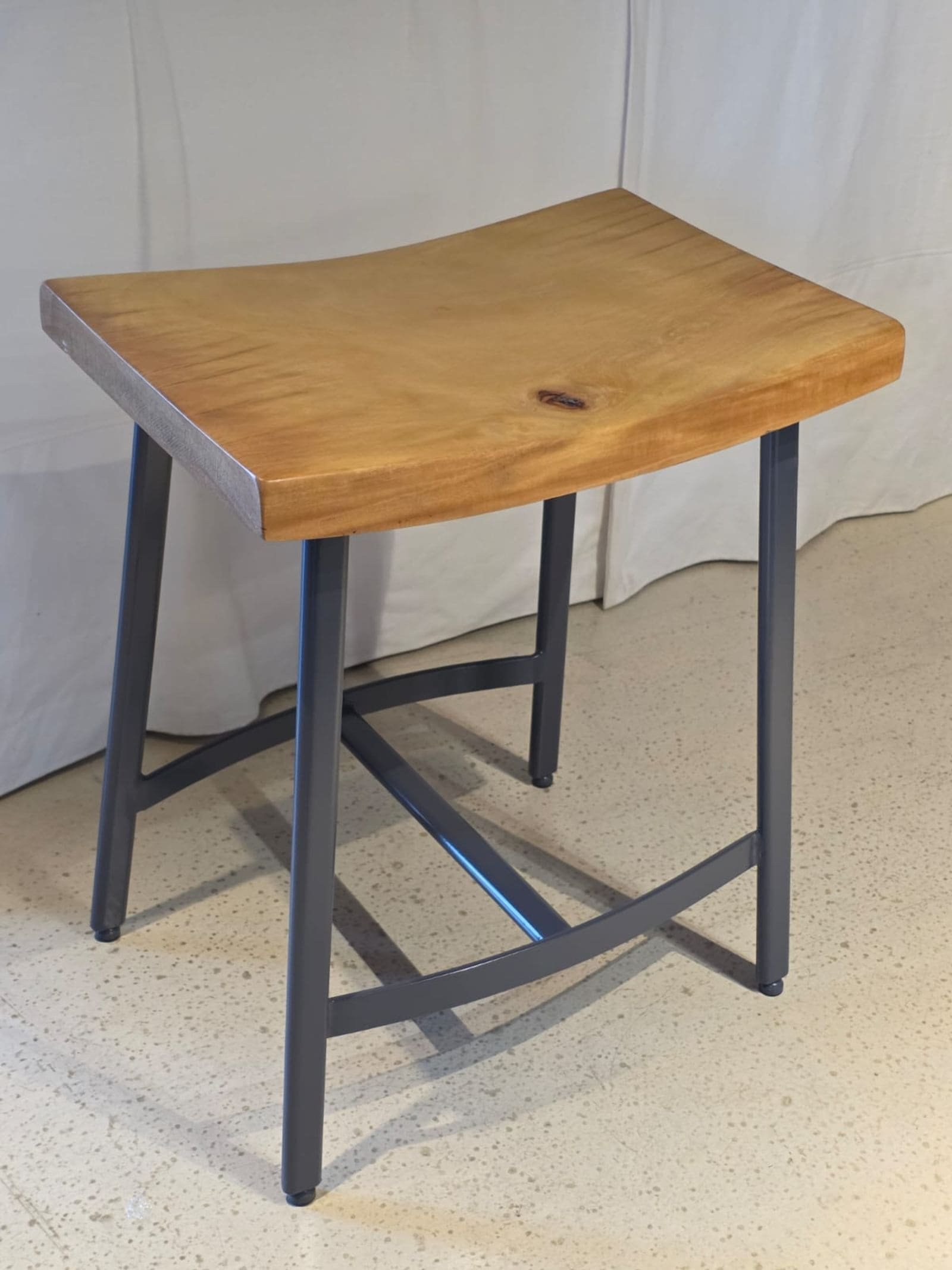 Estrutura em ferro, pintura acabamento especial. Assento em madeira rústica maciça.