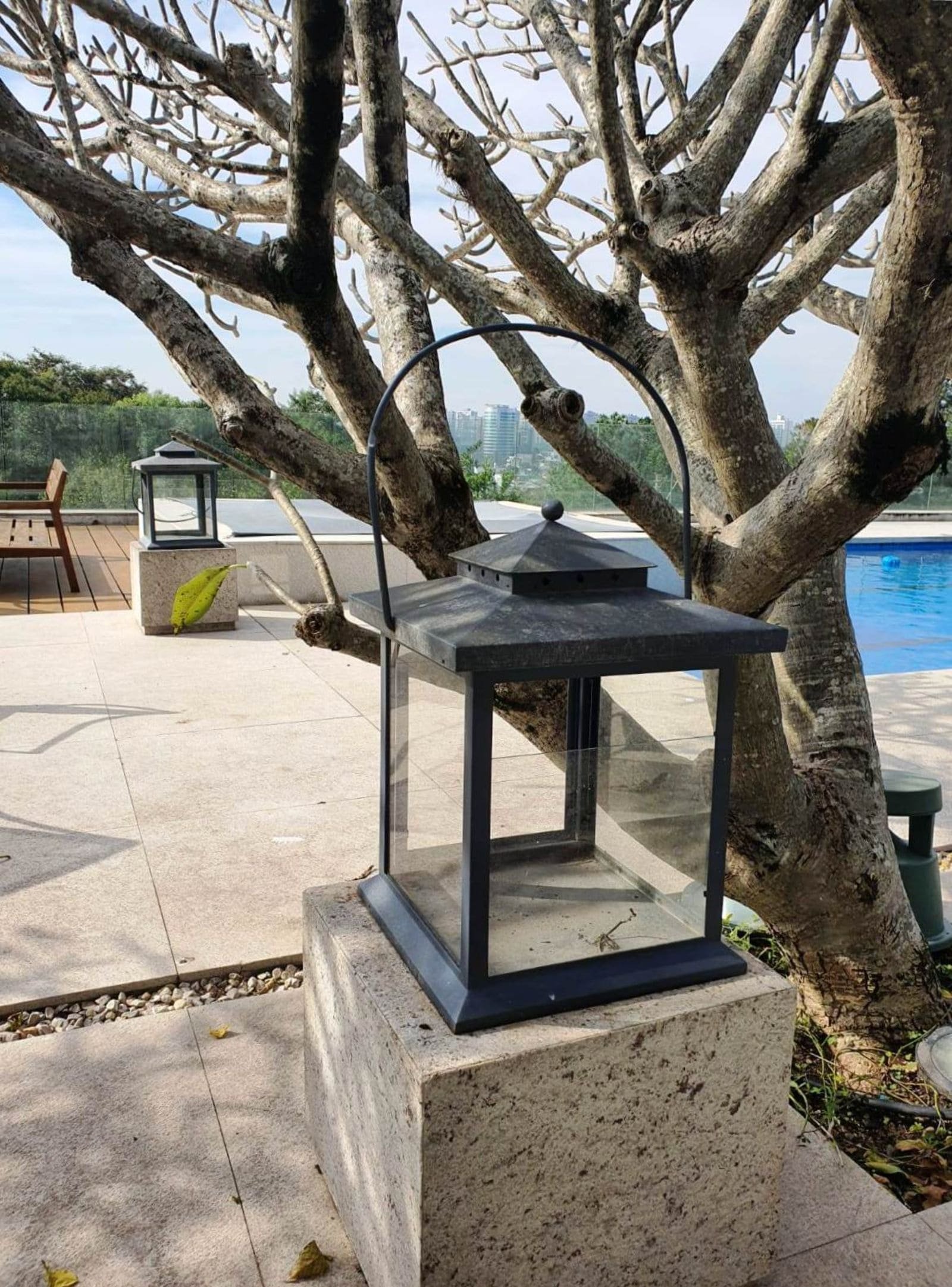 Estrutura em ferro maciço, vidros encaixados, acabamento especial para áreas externas.