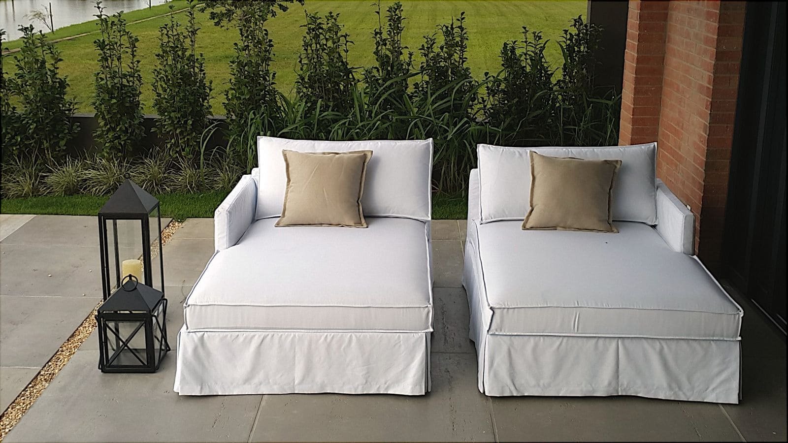 Estrutura em ferro maciço, vidros encaixados, com niveladores. Acabamento especial para áreas externas.