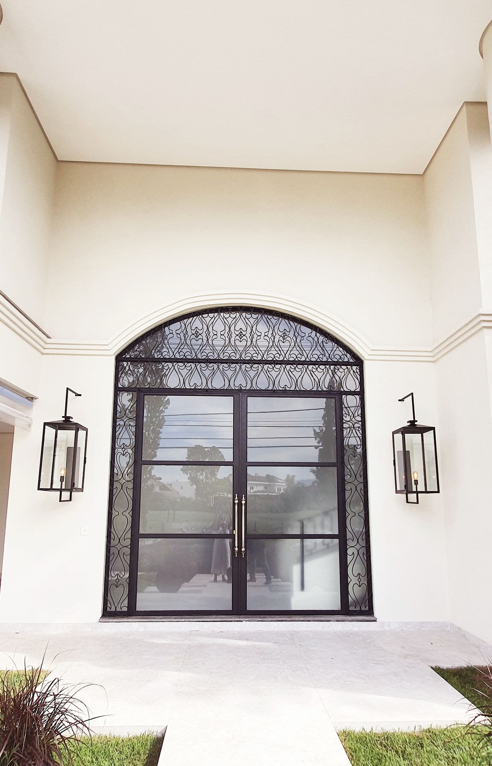 Estrutura em ferro maciço, vidros encaixados. Acabamento especial para áreas externas.